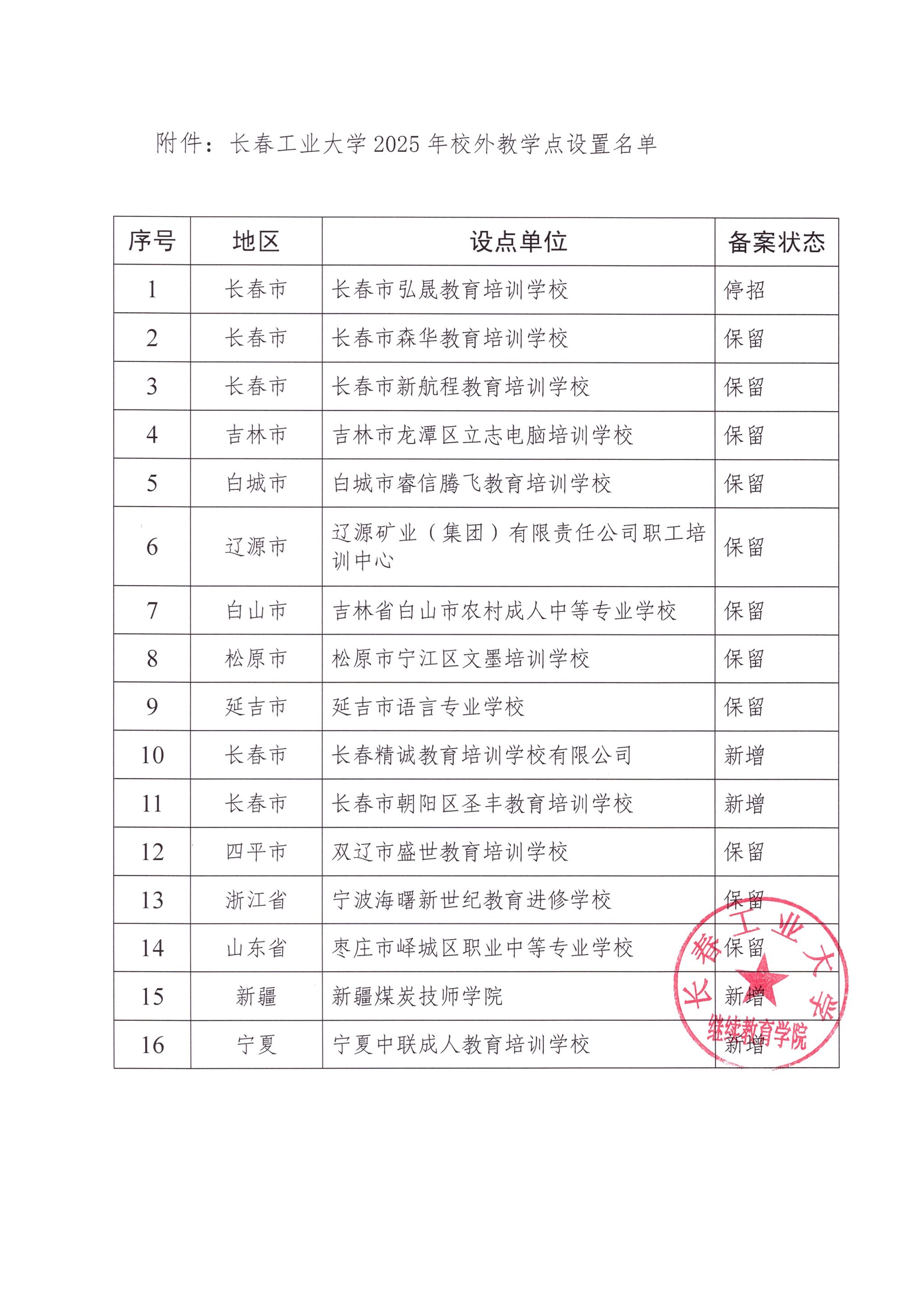 9428cn太阳集团古天乐高等学历继续教育2025年校外教学点设置备案公示信息